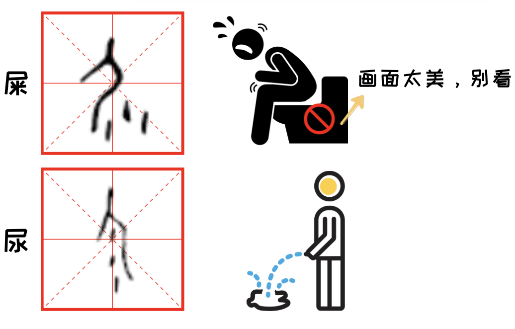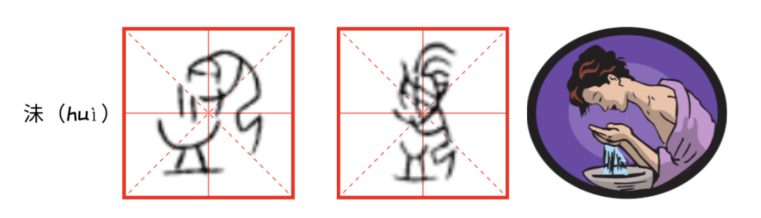 要是单独看第一个字形,有点像洗头,但聚会第二个字形就能推翻这一揣摸。一个东说念主跪坐在水盆旁,正用手捧起盆中的水扑在脸上,因此“沬”字的本义应该是“洗脸”。访佛的生存场景在甲骨翰墨形中罪孽高深,举例“毓”字,由女子、头朝下的重生儿、羊水三部分组成,赫然是女子分娩时的场景。“毓”的本义就是“生养”。“屎”“尿”等甲骨翰墨形的结构也与之相似。