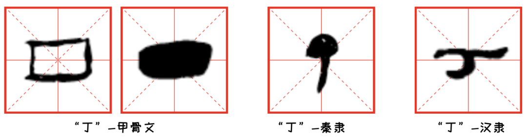 在甲骨文中,这类象形翰墨许多。为了让东说念主们一眼鉴别出其指代的事物,它们捏取物象最典型的特征,并合乎加以夸张、强调。举例“丁”字,在甲骨文中是一个方形,演变为隶书后才长出小尾巴。汉隶将方形压扁,小尾巴抨击,造成今天东说念主们写的“丁”字。