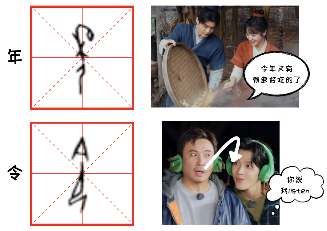 “年”字的甲骨翰墨形是“东说念主”背着“禾”,描述的是秋收表象,因此“年”字的本义就是谷物熟识,尤其指丰充。“令”字相似由高下两部分组成,上方是一张倒立的嘴巴,下方跪着一个东说念主,正在倾听对方的高歌。在“年”和“令”的简体字字形中,这种范围分明的高下结构照旧不复存在。