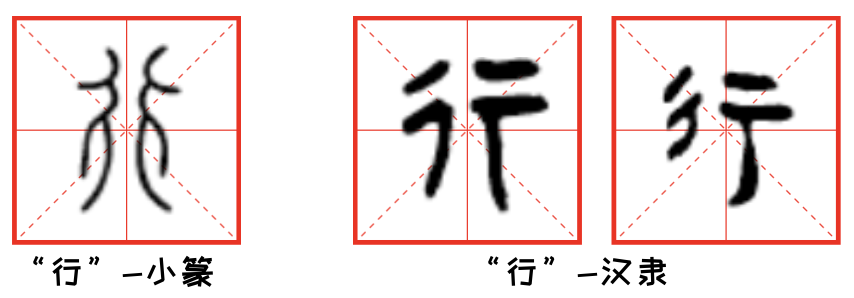 因此,“行”字的甲骨翰墨形并不是不悦表情包,而是一个十字街头。许慎在《说文解字》中觉得“行”字“从彳,从亍”,是一个阁下结构的形声字,讲明为“东说念主之步趋也”。这种说法赫然是不准确的。受限于那时的考古条目,许慎应当莫得见过“行”的甲骨翰墨形,才会作念出这么的讲明。在小篆中,“行”字还保留着阁下对称的情势,而到汉隶时,当代字形照旧初露雏形。