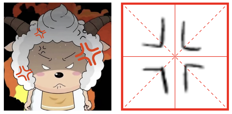 除了常人,甲骨文中还有许多意思的标志,一些字中致使出现了“单箭头”和“表情包”。举例底下这个字——
